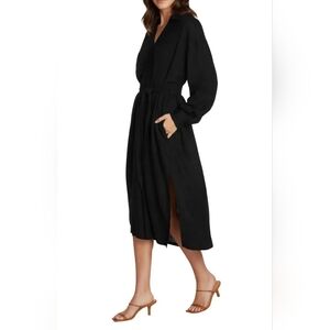 Willow Nadine Popover Long Sleeve Midi Shirtdress Black Size Small Linen Blend
