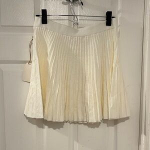 Brand new with tags. Soft cream knit mini skirt with flattering vertical pleats and a comfy elastic waistband. Lightweight and easy to style—perfect for spring with a blouse or flats.