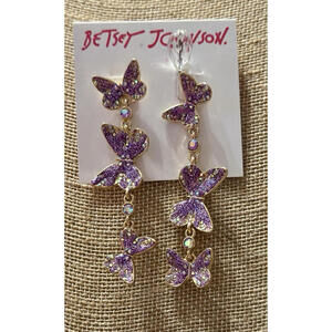 NEW Betsey Johnson Butterfly Mismatched Dangle Earrings Purple Lavender Crystals