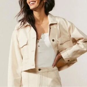 Chic cream jean jacket. Stylish and versatile. Perfect for layering.
