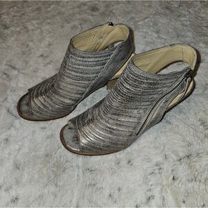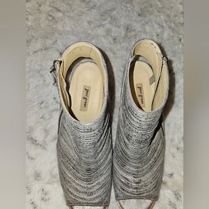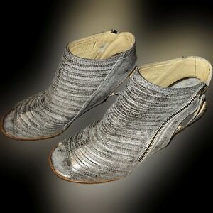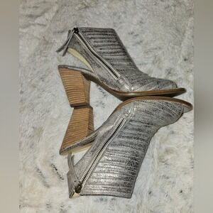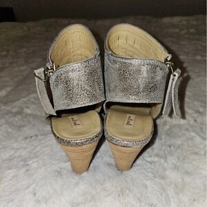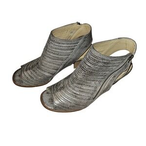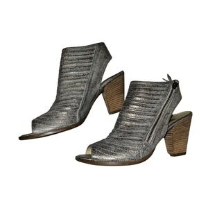 Paul Green Leather Pewter Stacked Sandals Zip Enry Size 6.5 Very Lightly Worn