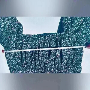ROW A women’s size medium floral dress. Black with multicolored flowers, lined inside so you can’t see through it in the sun. Cute cap sleeves that you can also wear off shoulder if preferred. It looks amazing both with a pair of flip flops for a casual day as well as with a pair of heels for a night out! Pit to pit it measures 14” and shoulder to hem it measures 32”. No stains, pulls, rips, etc it’s in amazing condition and only worn a few times!