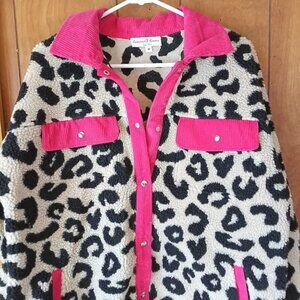 Discount Divas Leopard Print Pink Sherpa Fleece Jacket Size Small new