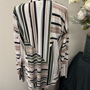 Dana Buchman Striped Split Neck Tunic Top Olive Black Cream XL