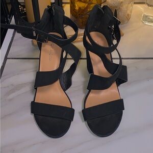 Step out in style with these elegant black strappy heels. Perfect for any occasion, these shoes offer both comfort and sophistication.