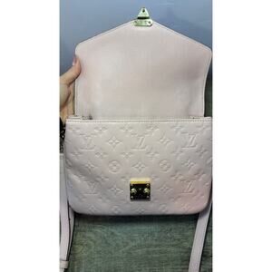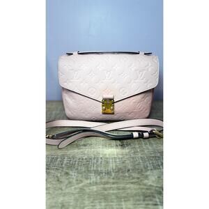 Excellent pre-loved condition. This Louis Vuitton Pochette Métis is crafted in soft rose pink Monogram Empreinte leather, featuring the iconic embossed Louis Vuitton monogram throughout. The leather remains supple and beautifully maintained with minimal signs of wear. Some hairline scratching. Hardware is bright, structure is intact, and the bag presents exceptionally well — please refer to photos for details.