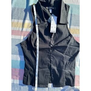 Urban Outfitters UO Party Girl Cotton-Blend Button Down Sleeveless Shirt Black