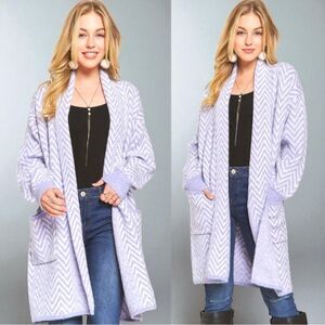 Purple White Chevron Sweater Cardigan Size Large NWT - Adora