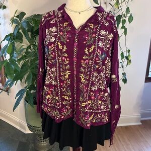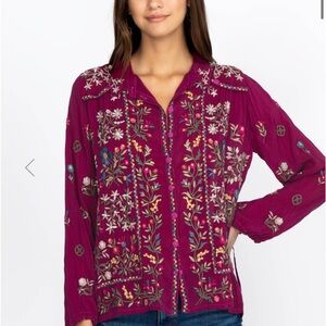 Johnny Was Bethan Embroidered Blouse in Red Wine