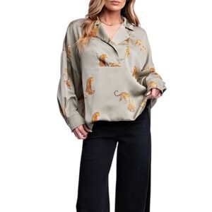 🌺 Easel Leopard Cheetah Print Button down Dull Satin Blouse Shirt S M L NEW