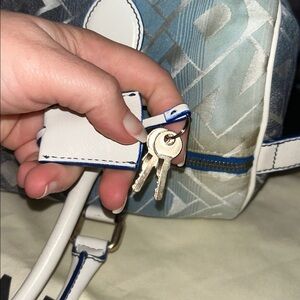 Style: A Boston-style satchel with a top zip closure, double top handles, and includes a detachable clochette and lock and keys.