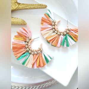 These Stunning FP Tropical Emelie Multicolored Raffia Tassel Dangle Earrings.A Must-Have Elegant & Beautiful Earrings. Features Rattan Tassels With & Push Backs.