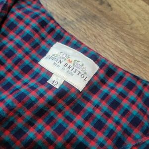 Vintage Susan Bristol Red and Blue Plaid Buttondown Midi Dress Size 12