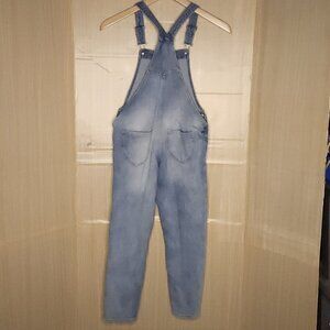 H&M Kids light wash distressed overalls 8. Gently used condition There is a mark above left knee (see photo). Measurements are: 26” waist, and 23” inseam.