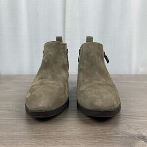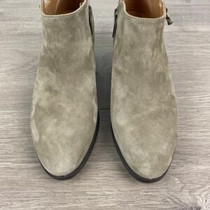 Vionic Stone Tan Gray Suede Cecily Waterproof Block Heel Booties Sz.8.5