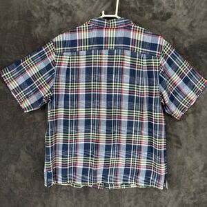 Tommy Bahama Mens M Silk Plaid Short Sleeve Button Up Shirt Original Fit Blue