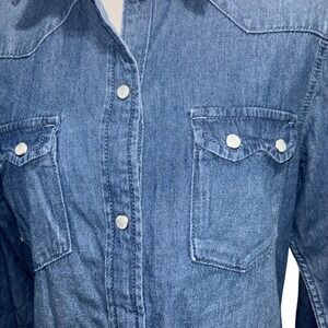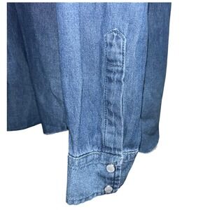 Lucky Brand Small Western Denim Medium Wash Pearl Snap Raw Hem Long Sleeve Shirt