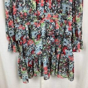 Cinq a Sept Blue Abstract Floral Lewis Tiered Mini Dress Sz.6