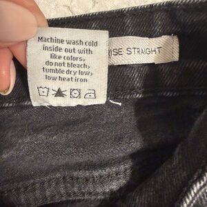 Discover timeless style with these elegant black straight leg jeans. Perfect for any occasion, they offer a sleek and comfortable fit.