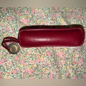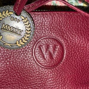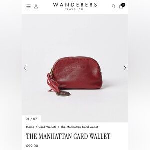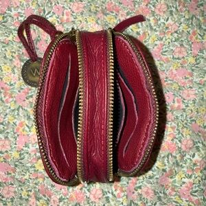 Elegant, soft, beautiful burgundy Manhattan leather card wallet from The Wanderers Travel Co.- perfect for every day use. Features dual secure zip closures with decorative brand medallion and antique gold hardware. 4 designated card slots that will hold more than one card each with enough room for coins/cash, and your car key. *EUC*
