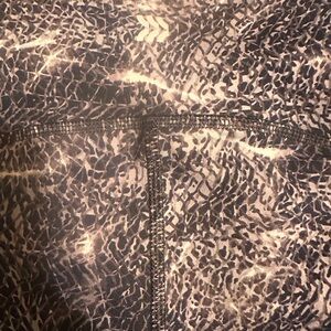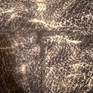 All Motion high-waisted biker shorts in a sleek gray and black abstract animal-style print. Designed with a compression fit that’s supportive, flattering, and perfect for workouts or athleisure wear.