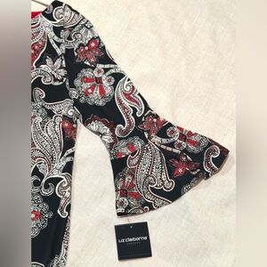 Liz Claiborne Dress Black and Red Paisley Long Sleeve NWT