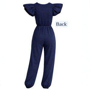 Sundays Navy Blue Flutter Sleeve Elasticized Hem Jumpsuit Size Small