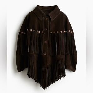 Lorena Saravia H&M Fringed Suede Cape Jacket ONE SIZE