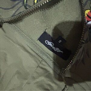 Ed Hardy’s Green Hoodie with Floral and Graphic Design