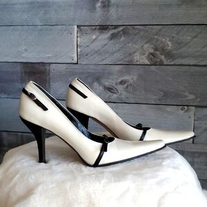 KENNETH COLE NEW YORK IVORY HEELS LEATHER SIZE 6 VINTAGE CLASSIC BLACK WHITE