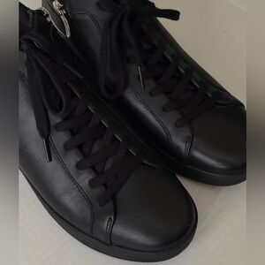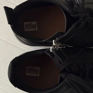 Fitflop Black Leather Rally Sneakers High Top Lace Up Side Zipper Women's Sz 10