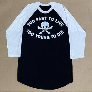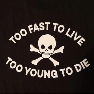 TOO FAST TO LIVE & TOO YOUNG TO DIE Black long sleeve shirt with skull and crossbones graphic #goth #skater