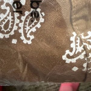 Stylish tan bucket hat with paisley design. Ideal for casual wear.