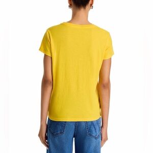 Hell on wheels. A soft crewneck with a slim fit for a vintage look and feel. Made from 100% supima cotton in bright yellow, the tee features a bike show graphic in tan on the front.