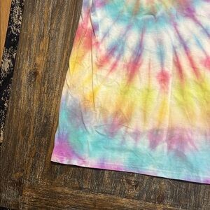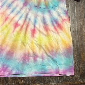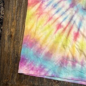 Colorful tie-dye tee with a convenient front pocket. Ideal for casual outings.