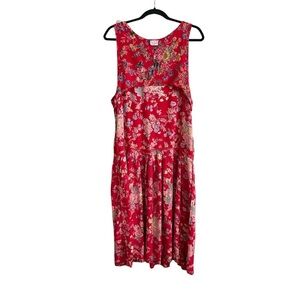 April CORNELL TRADING Vintage 70s Red Floral Dress MIDI Dress Cottagecore Size Medium