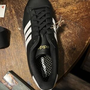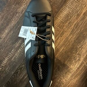 Chic Adidas sneakers with a sleek black and gold design. Perfect for sportswear.