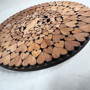 Wooden Moose & Heart Trivet Round Carved Wood Hot Plate Scandinavian Style