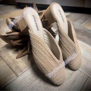 Jeffrey Campbell for Anthropologie 🤗 It’s divine! Featuring a leather insole, woven faux microsuede upper, and a good grippy sole. I love the cap toe and the vamp makes every foot look like Cinderella. ✨ The block heel keeps you sturdy, yet chic. Perfect for a casual outfit or spring/summer dress.