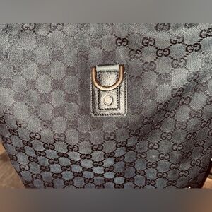 Authentic EUC GUCCI Abbey Messenger Bag Gold Hardware GG black canvas w dust bag