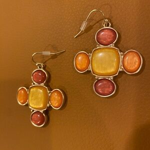 Add a touch of elegance with these stunning gold and orange earrings. Perfect for any occasion.