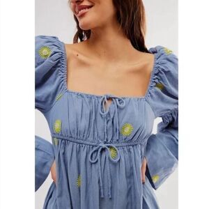 New! Free People Emory Embroidered Sun Midi Dress blue, size S