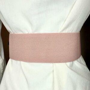Light pink statement satin flower wide elastic waistband belt