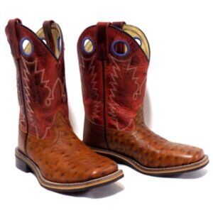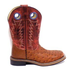 Smoky Mountain Boots Youth #3752C Cognac & Red Ostrich Embossed Leather Cowboy Boots.