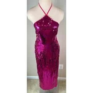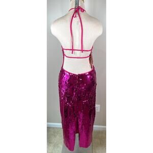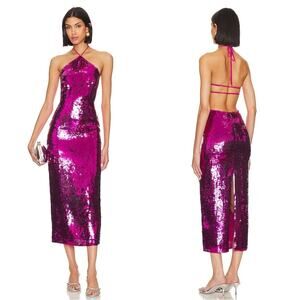 NWT Cult Gaia Anemone Pink Tasmina Sequin Halterneck Midi Dress Size Medium is brand new with tags! Featuring: