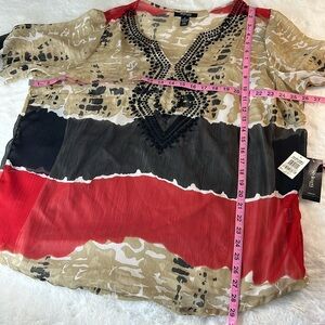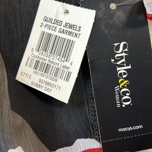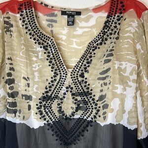 STYLE & Co Woman Guilded Jewels NEW with Tags Semi Sheer Embroidered Tunic with Tank Top 2 Piece Garment Tank Top is Attached
