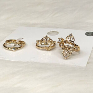 Forever 21 Gold Midi Rings. Stunning Gold Ring Set, Moroccan Style Filigree Rings with Rhinestone Detail. Stunning!
