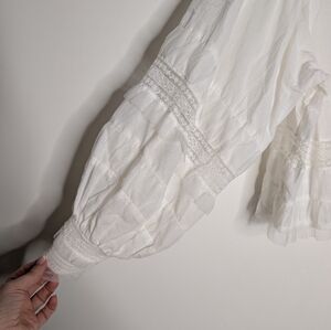 Anthropologie Lace Ruffle Peplum Blouse White Sheer Boho Size S