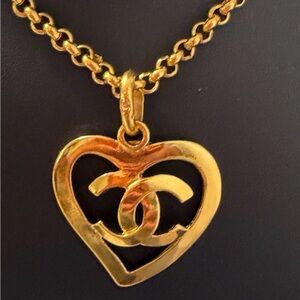 Elegant Vintage 95 Chanel gold heartnecklace, perfect for any occasion. Add a touch of luxury to your outfit.