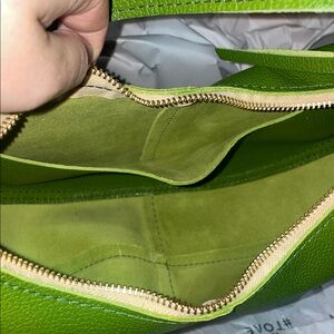 BNNU. Smoke free, pet free home. Taken out of box for photos. Super cute and vibrant mantis. She’s got some squish to her but not super floppy. Zipper fully functional. Adjustable shoulder strap. No major flaws for c grade. Some character marks in the leather